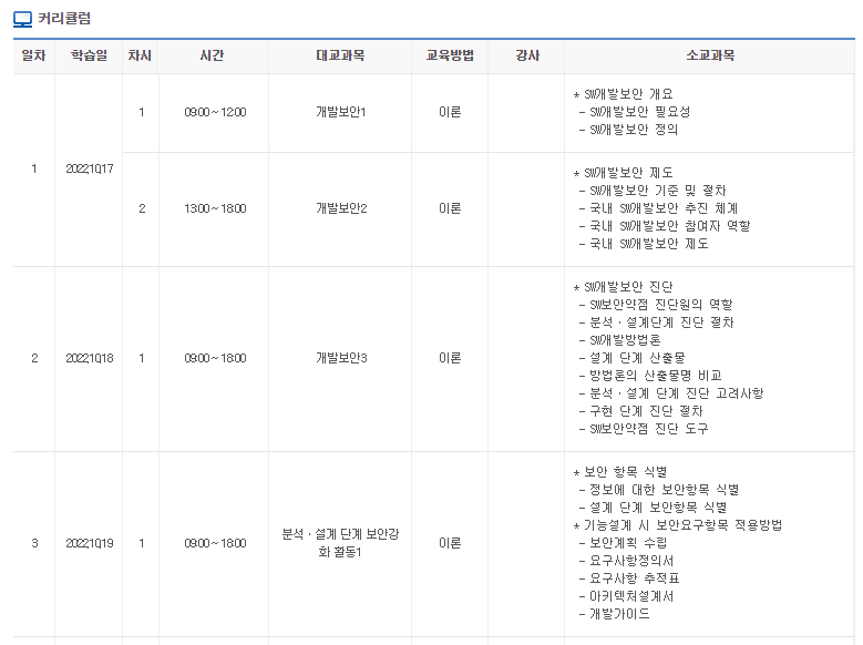 (참고) 2022년 SW보안약점 진단원 양성교육 세부 내용