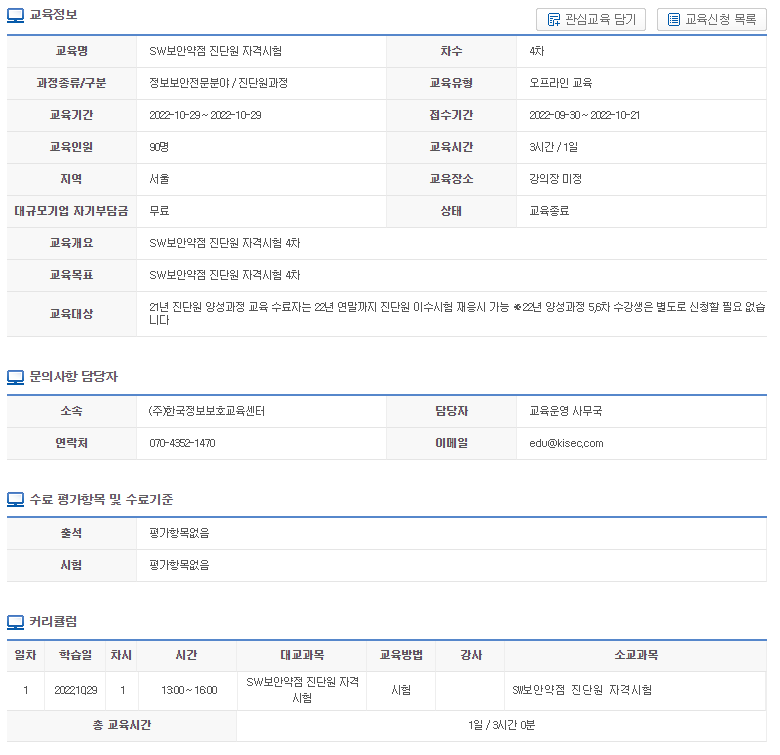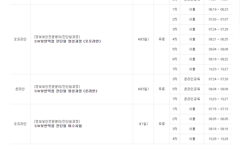 2023년도 SW보안약점 진단원 양성과정 교육 일정 및 지격시험 일정이 발표되었습니다.