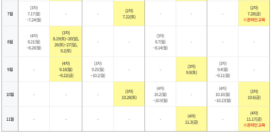 2023년 개인정보 영향평가 전문인력 교육 (1차) 접수기간 : 4.3(월)~4.10(월) 교육기간 : 5.8(월)~5.12(금) (2차) 접수기간 : 5.8(월)~5.15(월) 교육기간 : 6.10(토)~11(일),17(토)~18(일),24(토) (3차) 접수기간 : 7.17(