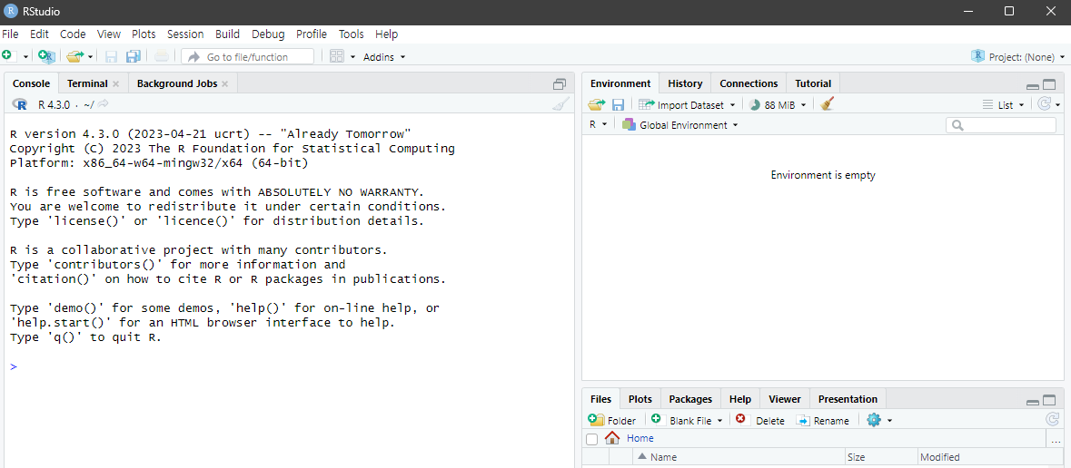 다운로드 사이트 : https://posit.co/download/rstudio-desktop/