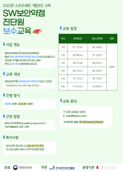 [일정안내] 2023년 SW보안약점 진단원 보수교육