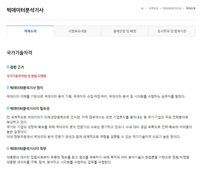 빅데이터분석기사 시험을 응시할수 있는 자격에 대해서는 아래 페이지에서 확인이 가능합니다.