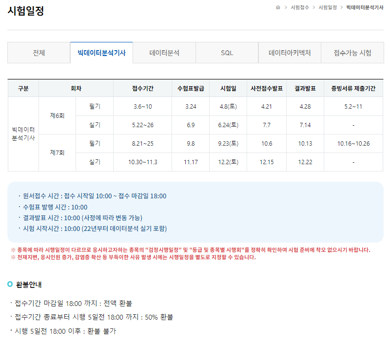 빅데이터분석기사 시험 일정